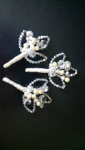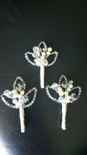 • Load image into Gallery viewer, Crystal and pearl buttonhole  with Ab crystals  for a Winter wedding
