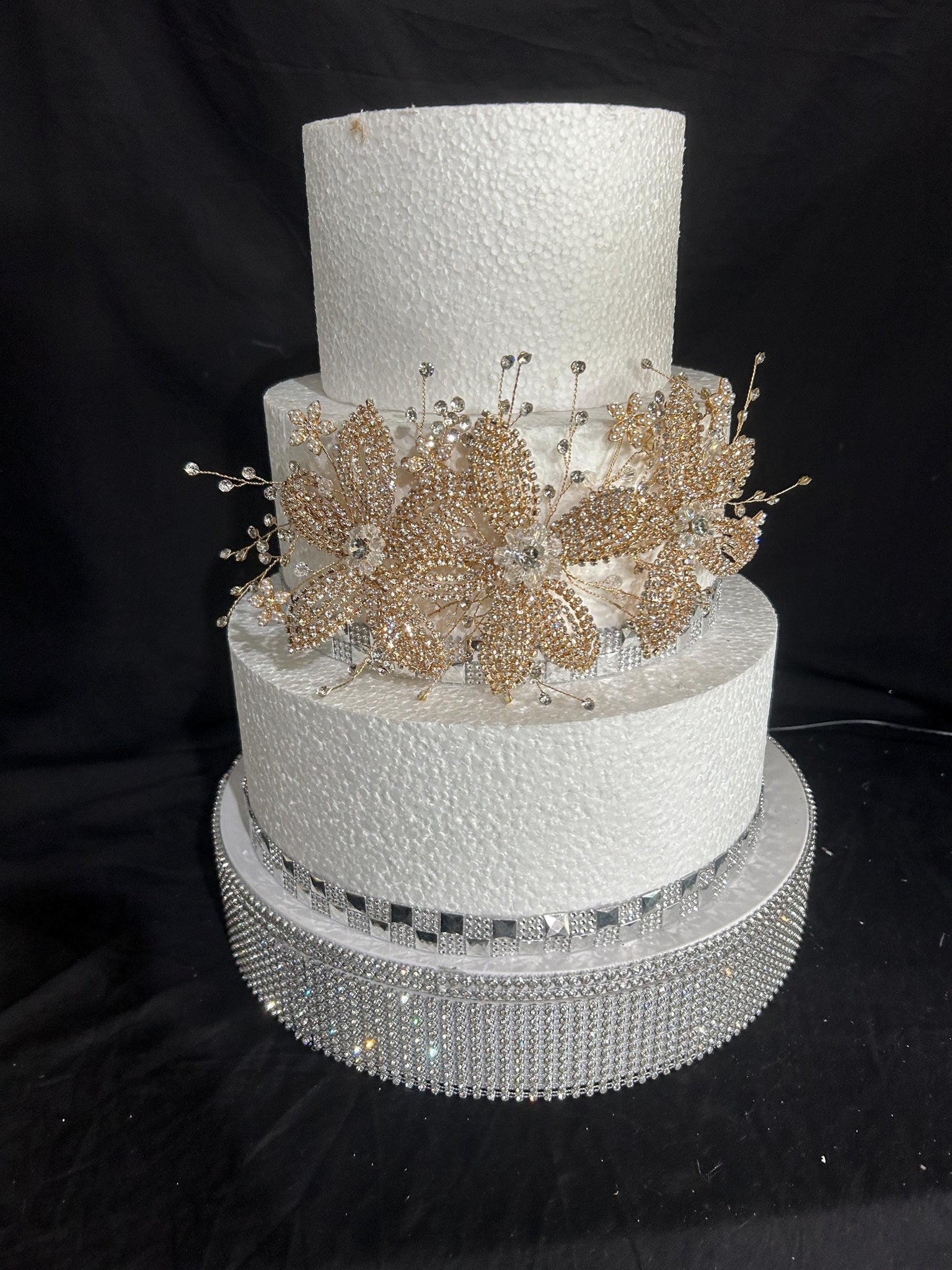 Transform your wedding cake into a true centerpiece with this handcrafted gold rhinestone cake jewelry, designed to add timeless sparkle, elegance, and couture-level detail to your celebration.