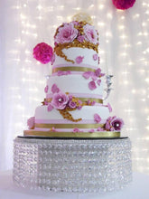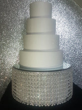 Wedding cake stand cake base as shown above with this elegant clear and silver crystal effect , mirror top and dangling clear acrylic crystal strands all around the edge