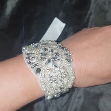 Crystal and ivory pearl Vintage Wedding Bride Cuff Bracelet Art Deco Great Gatsby Vintage Glam crystal cuff bracelet
