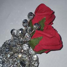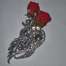 Silver crystal beads & Red Foam roses and crystal brooch detail perfect for mothers of the bride and grooms men