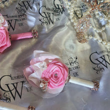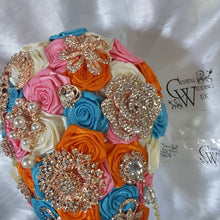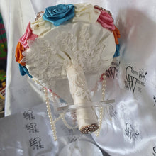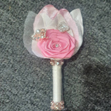 This small bridal brooch bouquet is made with beautiful artificial HAND ROLLED FABRIC FLOWERS that can be customized in any colour mix that you choose- see chart