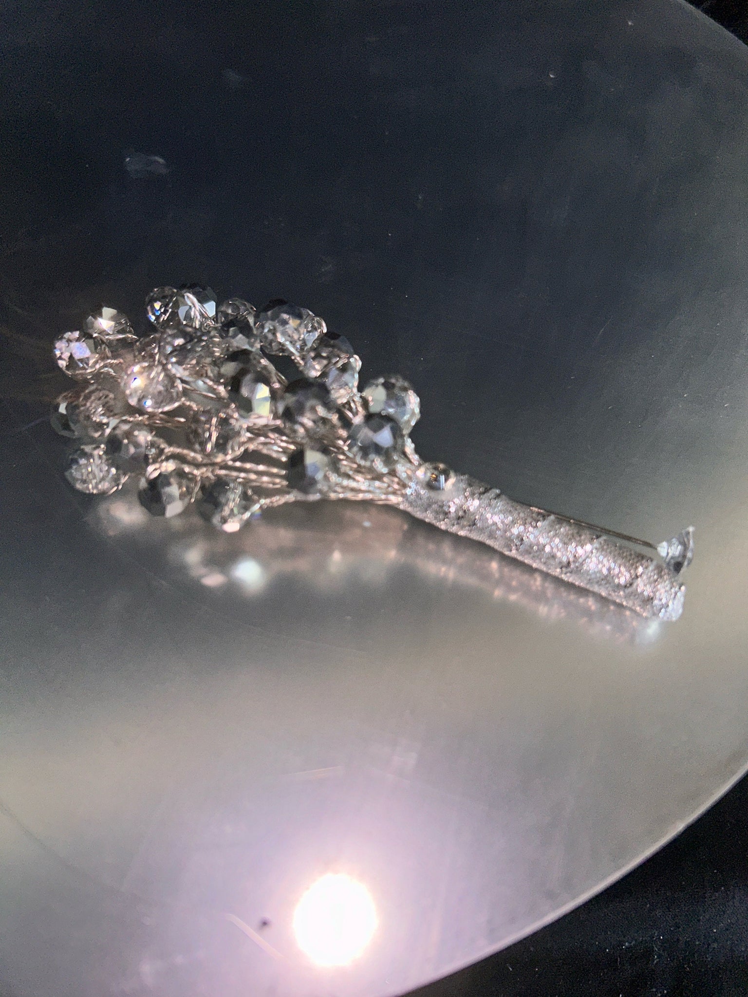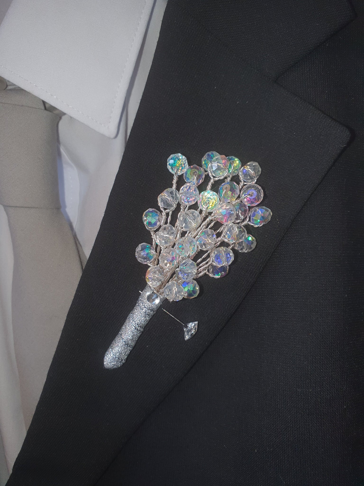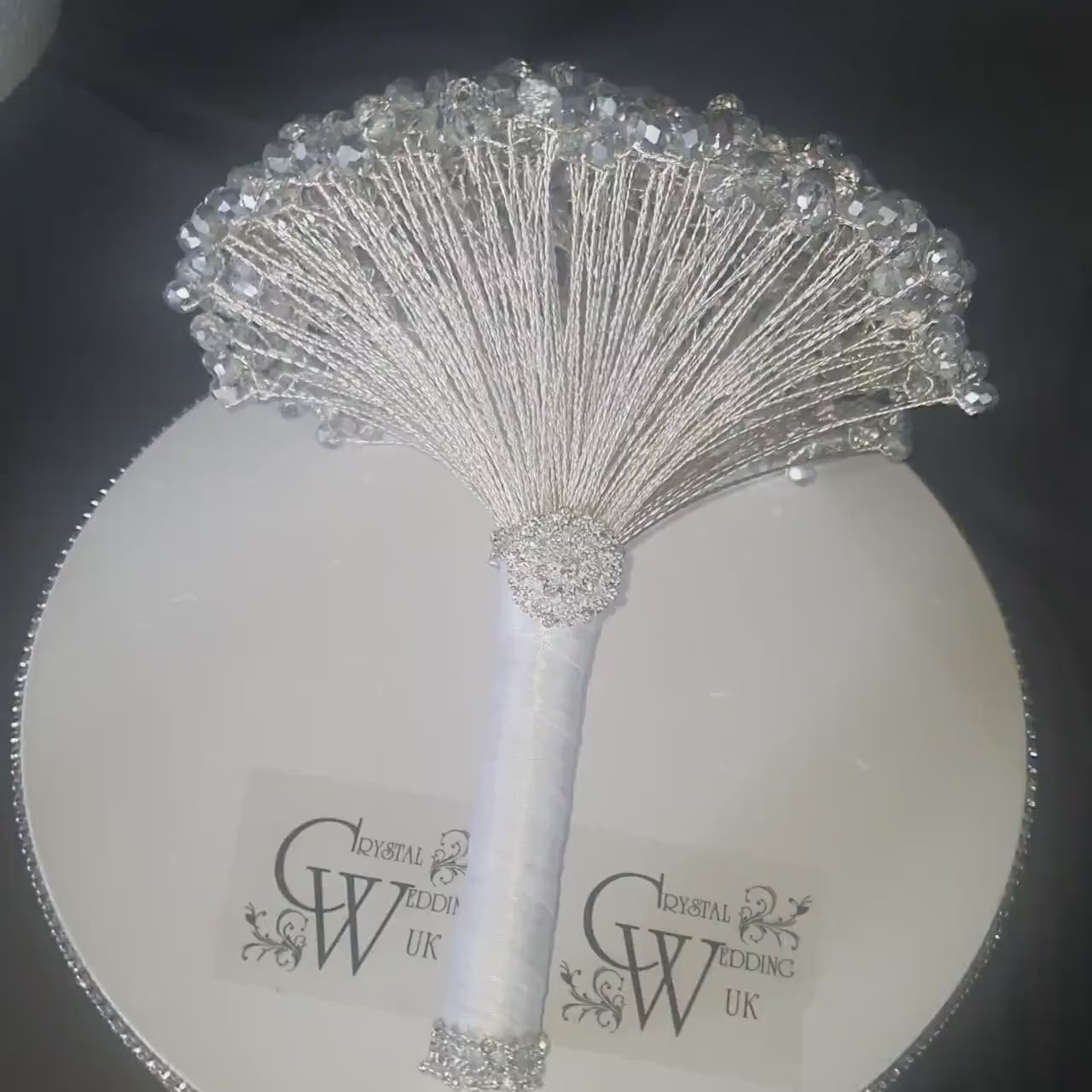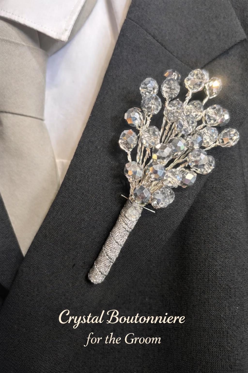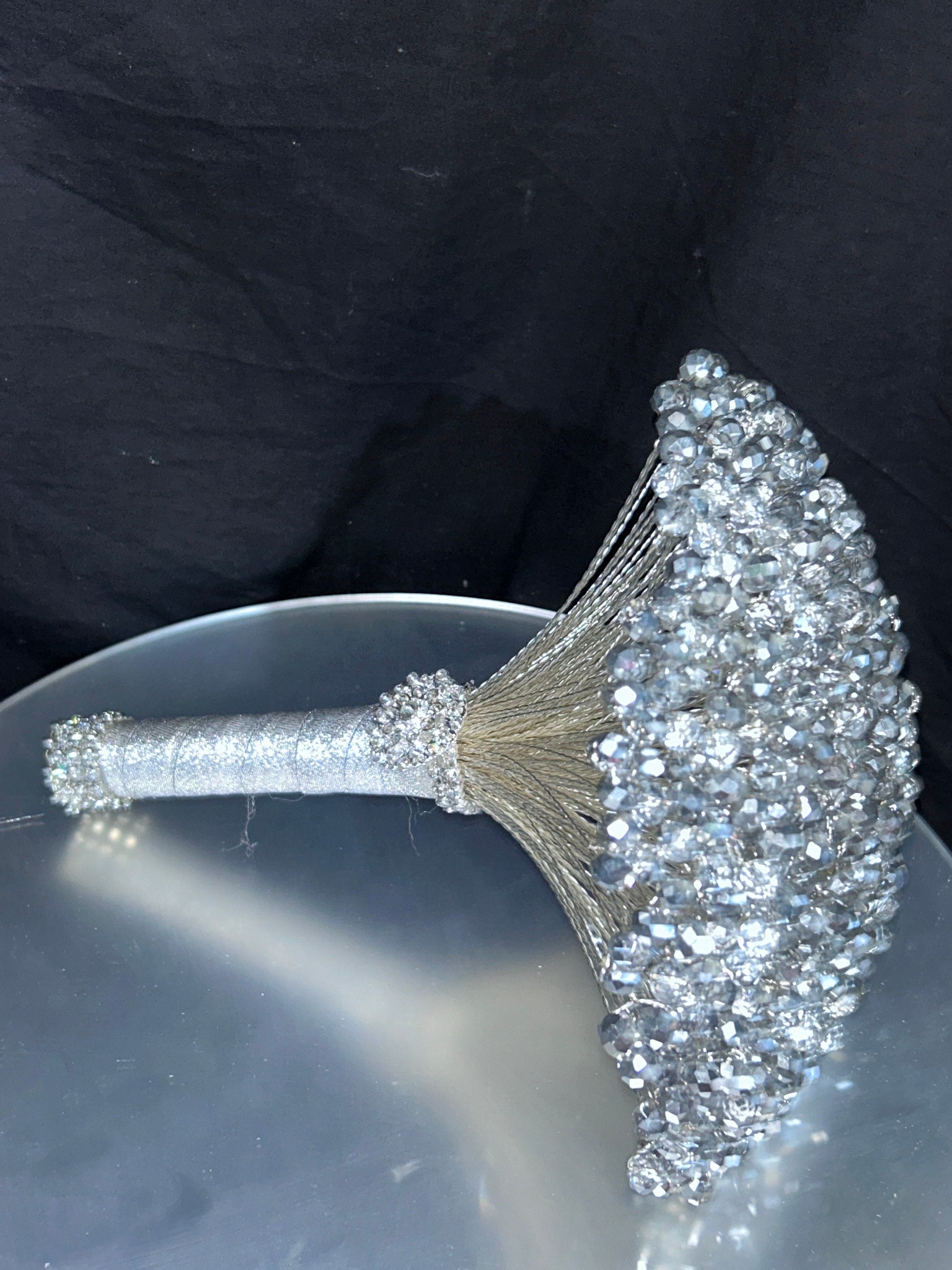 This luxury silver crystal bouquet blends clear and silver beads into an elegantly beaded posy that catches the light beautifully — perfect for classic, glamorous, or modern weddings.