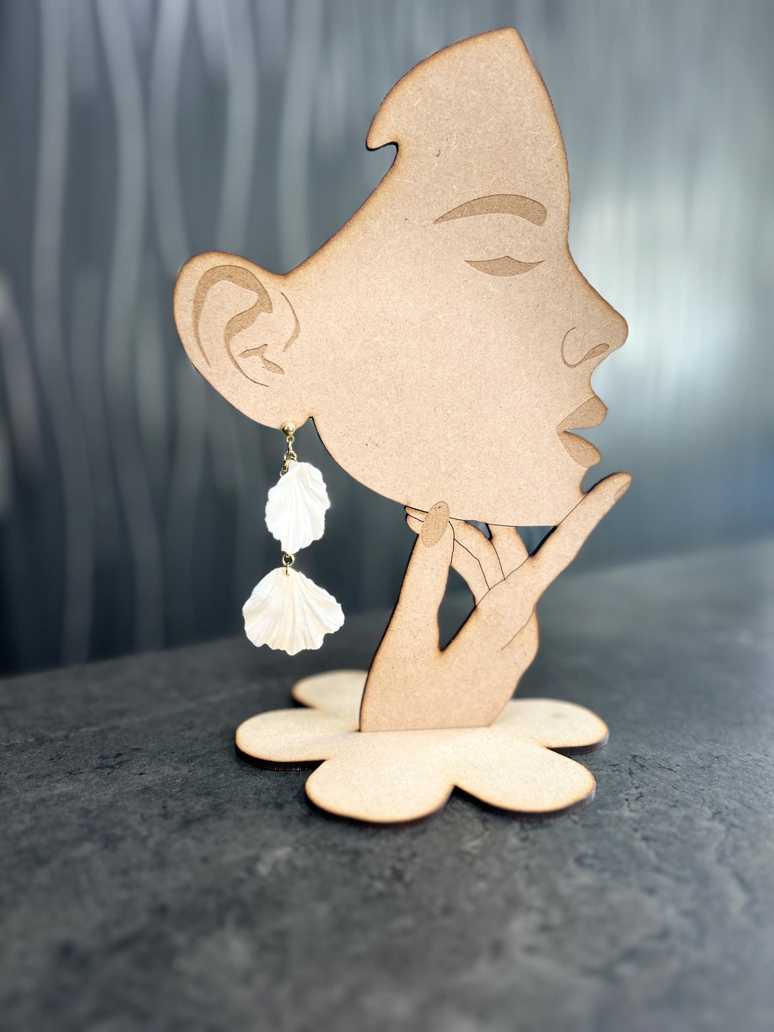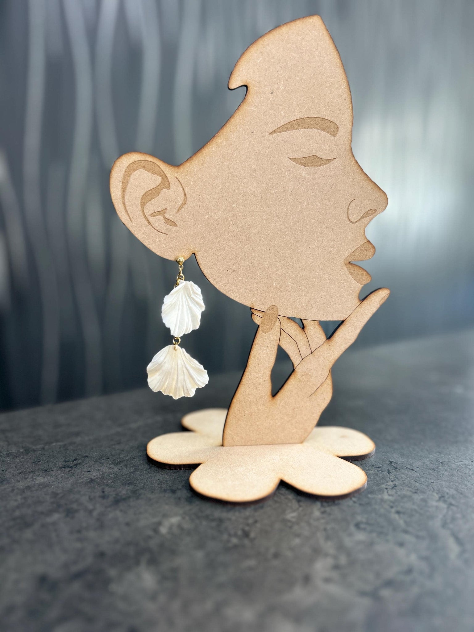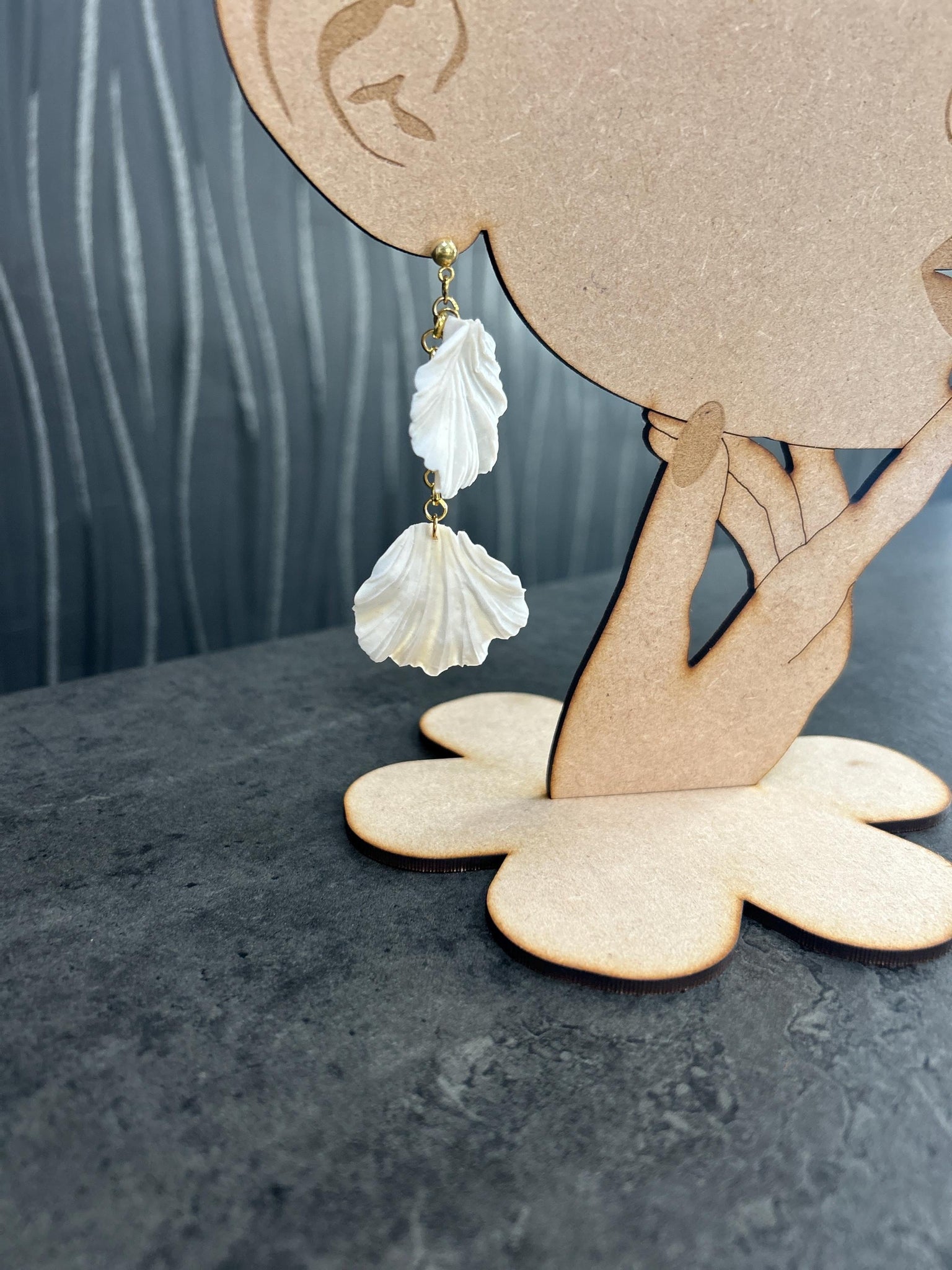 Handcrafted from fine clay, these earrings feature delicately layered petals - creating graceful movement with every step. Suspended from gold chains, they embody sophistication and timeless beauty.