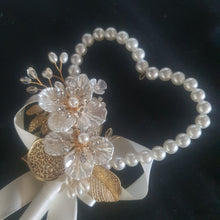 Largeheart with ivory flowers and crystal accents on a gold leaf base