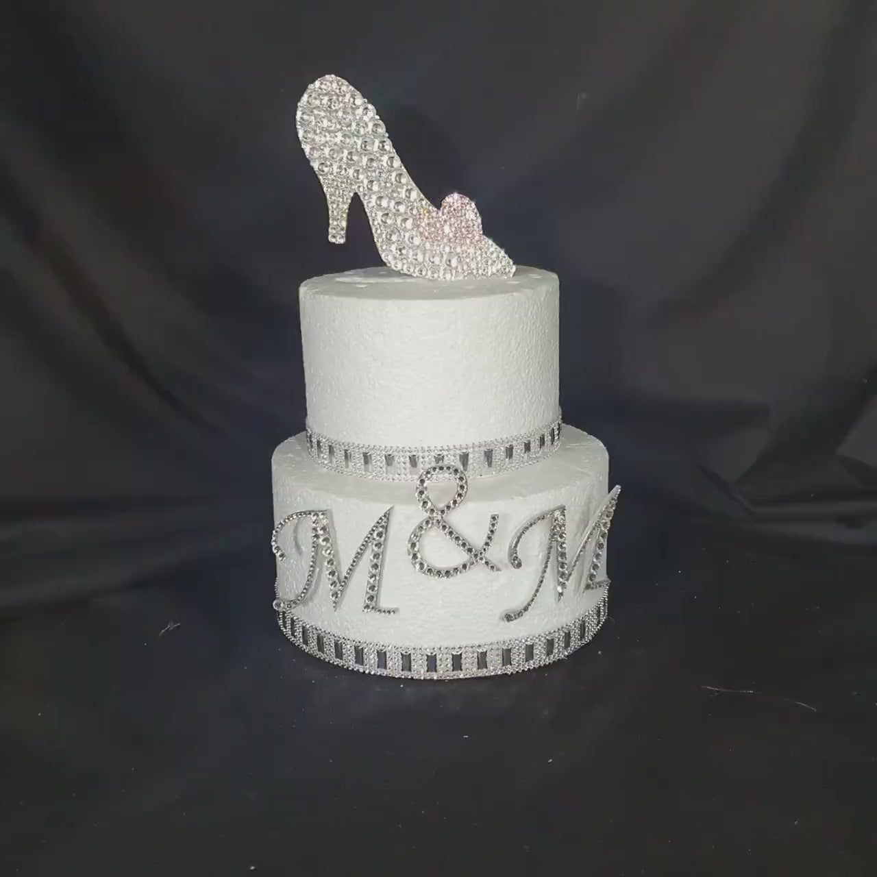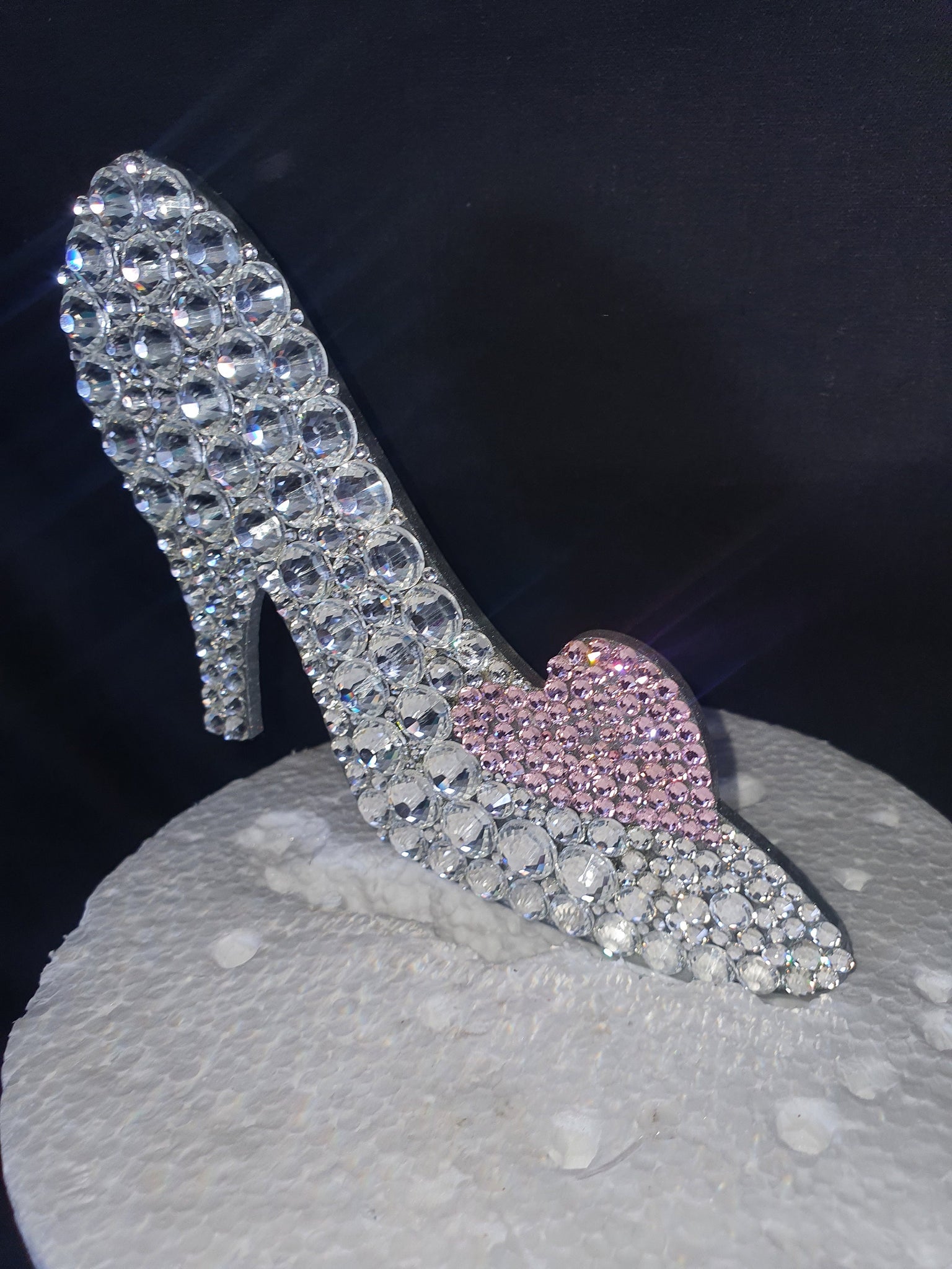 Fairytale glass slipper cake topper that will WOW your guest with the sparkle and be a forever keepsake as a reminder of your special day.