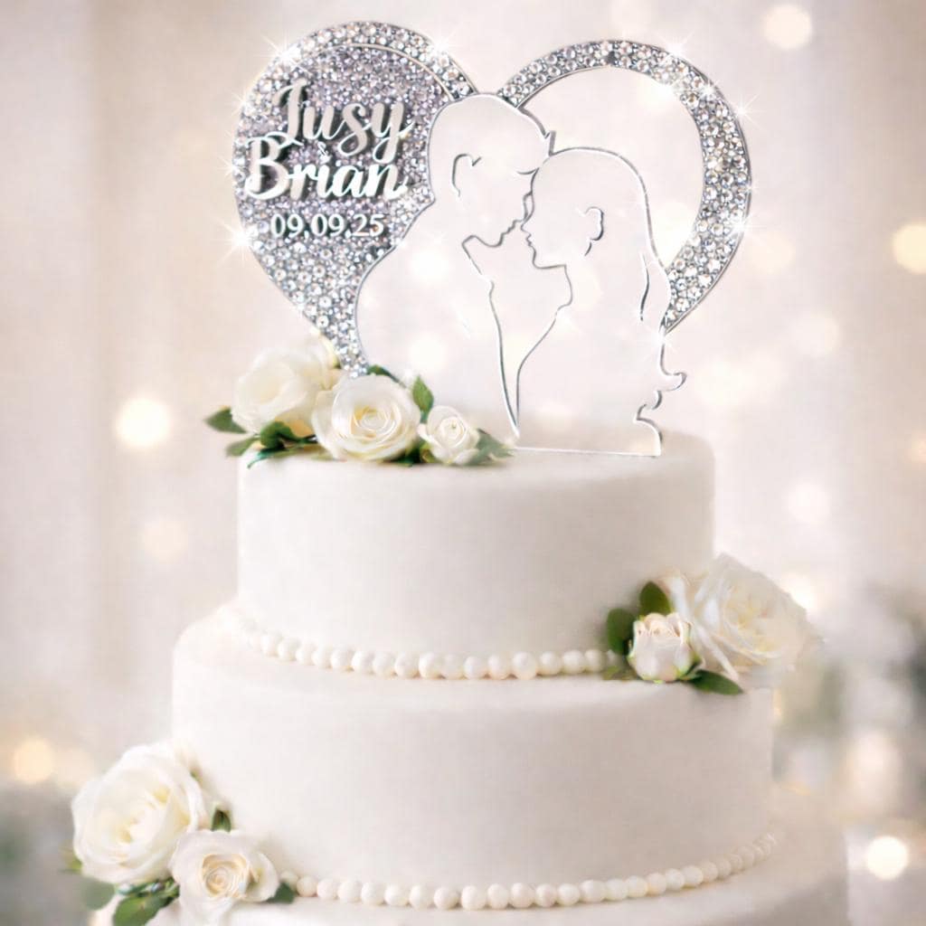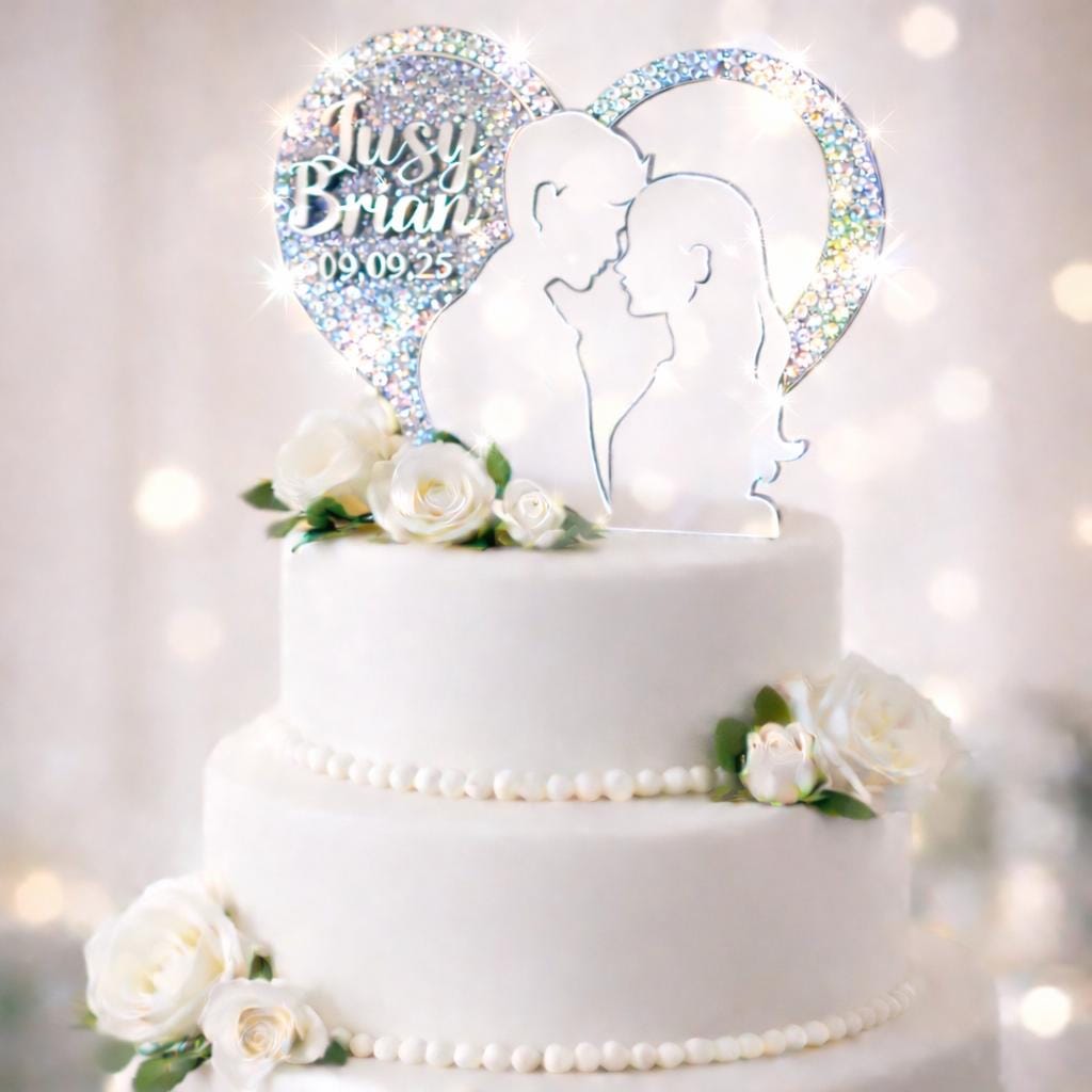 Add elegant sparkle to your cake with this stunning handcrafted crystalwedding or Engagment cake topper, made with premium Swarovski Elements crystals, carefully placed by hand on laser-cut food-grade acrylic in the base colour