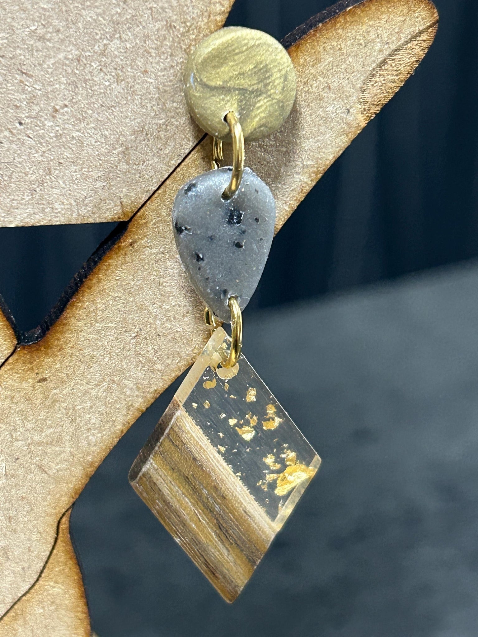 •   Handmade from granite effecy polymer clay, wood, gold leaf fleck resin