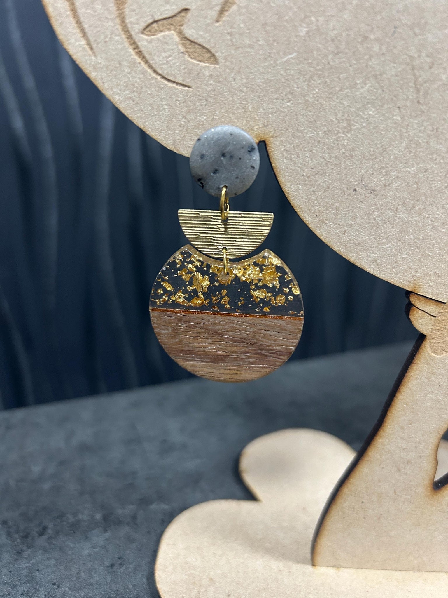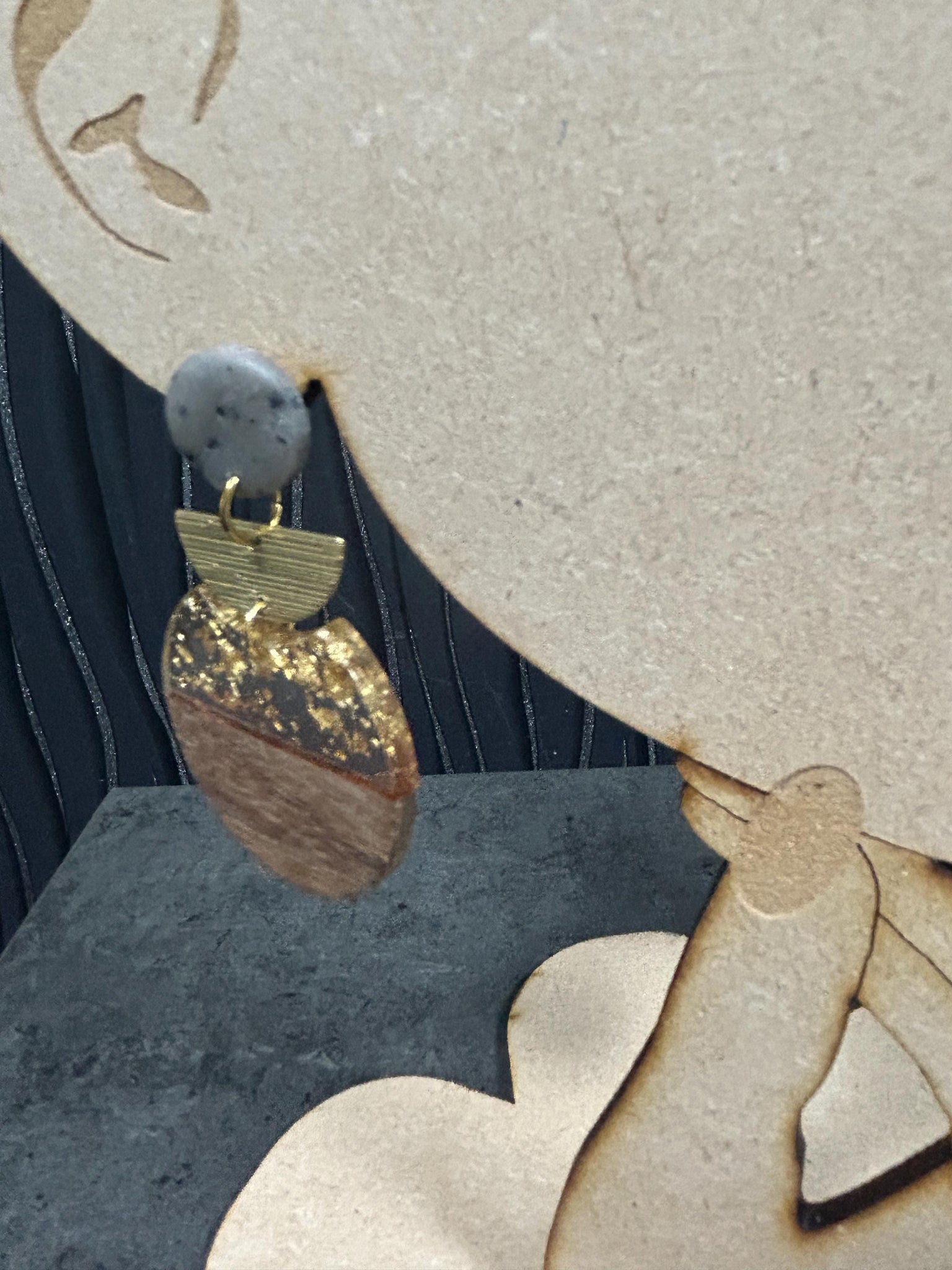 ♥ Materials: Polymer clay, textured brass, resin, stainless steel hypoallergenic posts