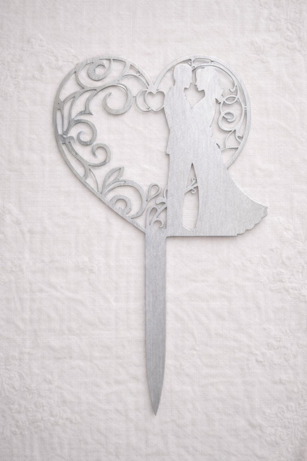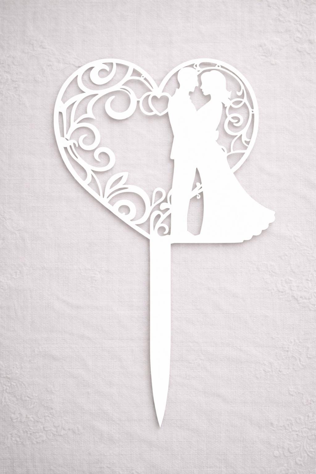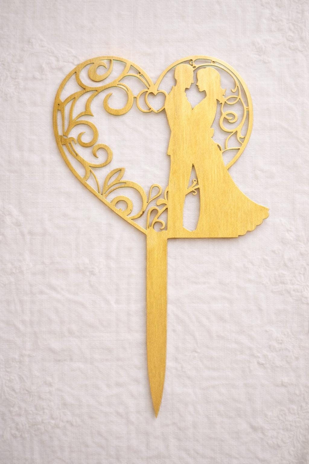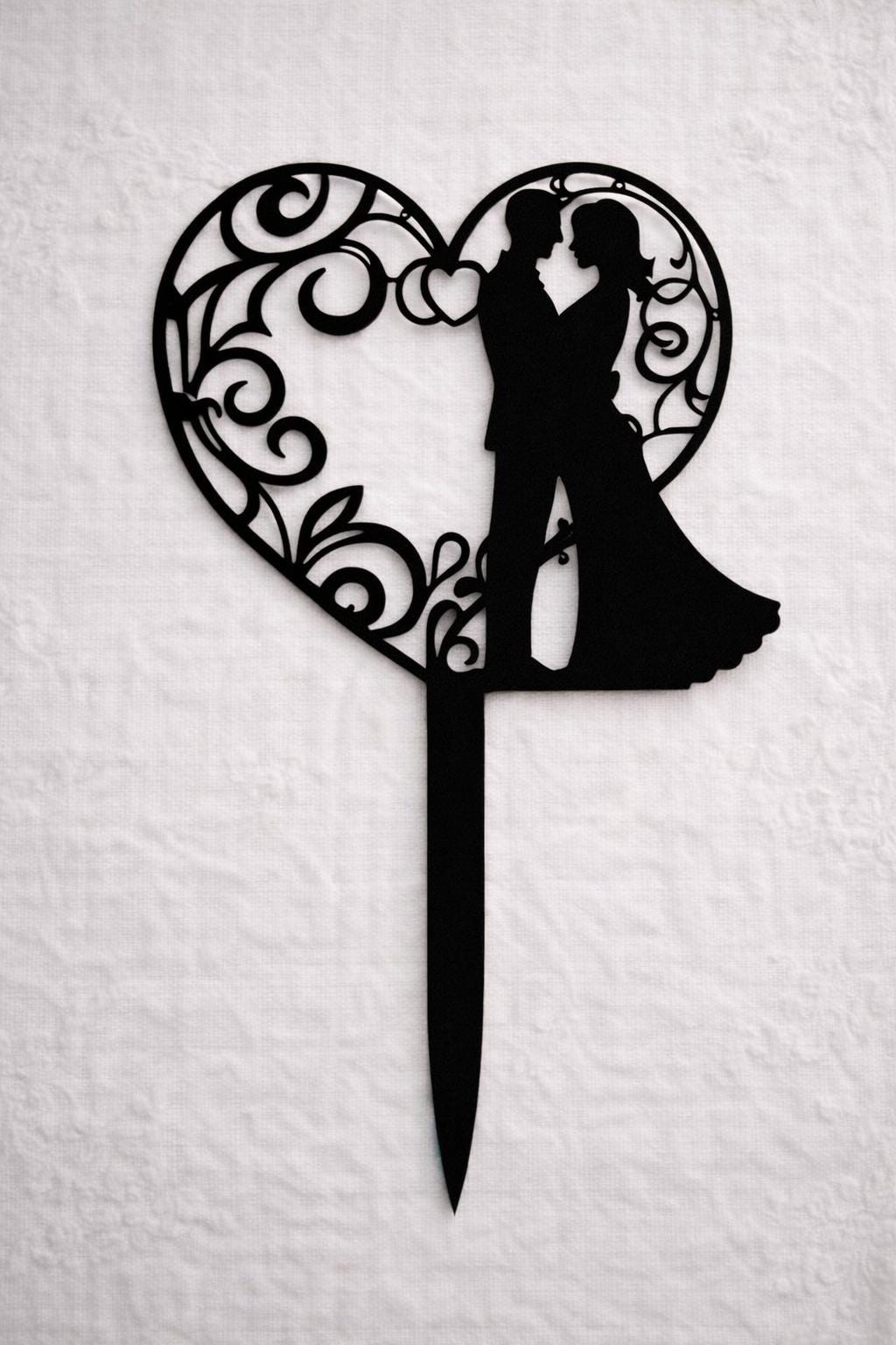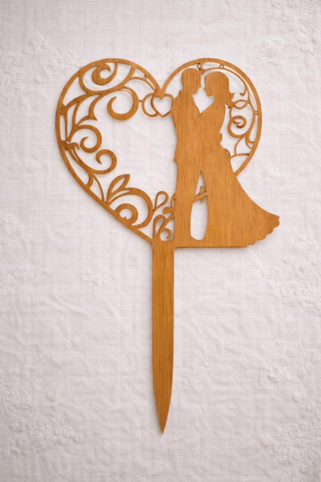 Couple Rustic Wood Cake Topper –Artistic Heart and couple Silhouette