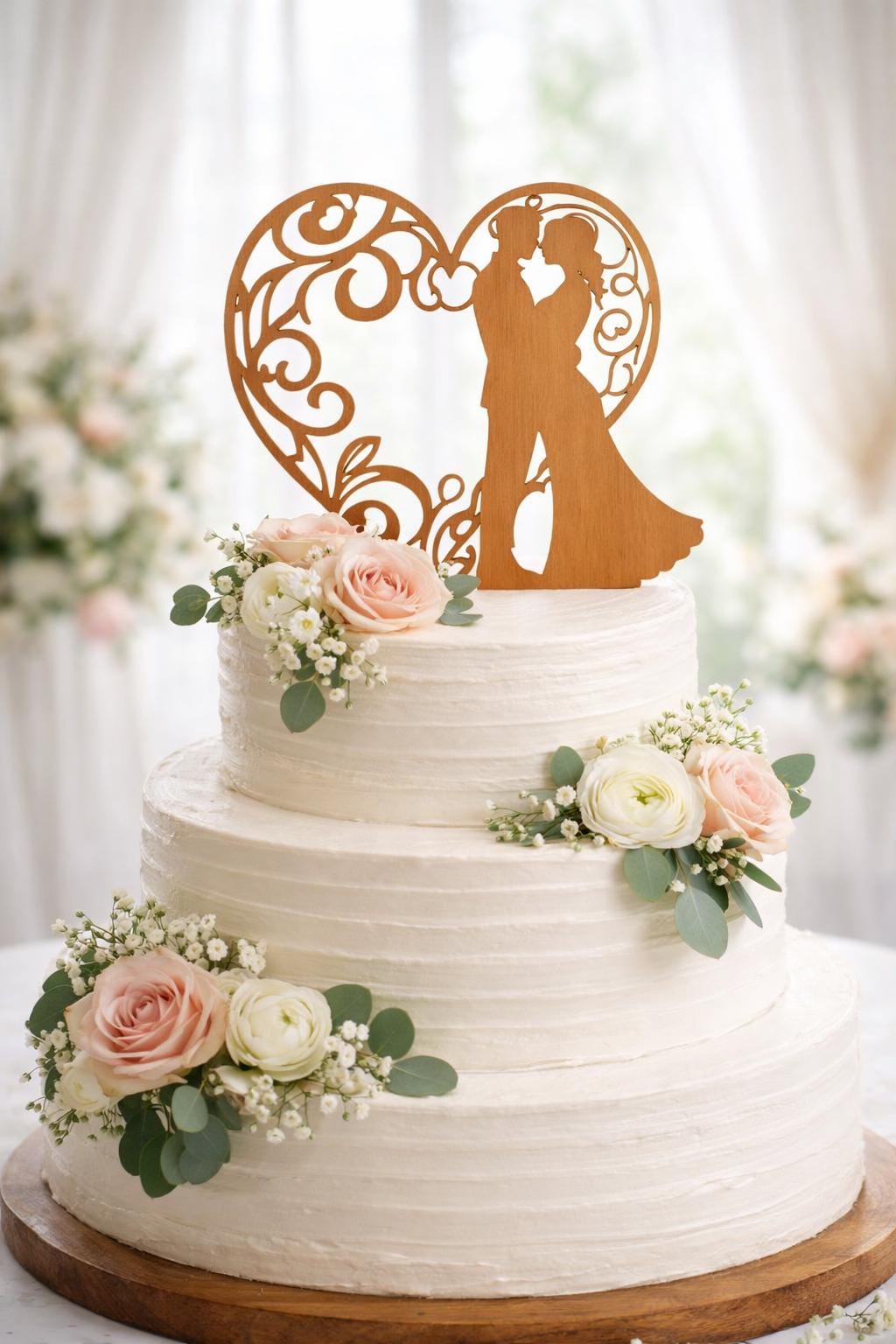 Perfect for semi-naked cakes, buttercream cakes, and rustic wedding themes, this topper pairs beautifully with natural décor, florals, and wooden cake stands.